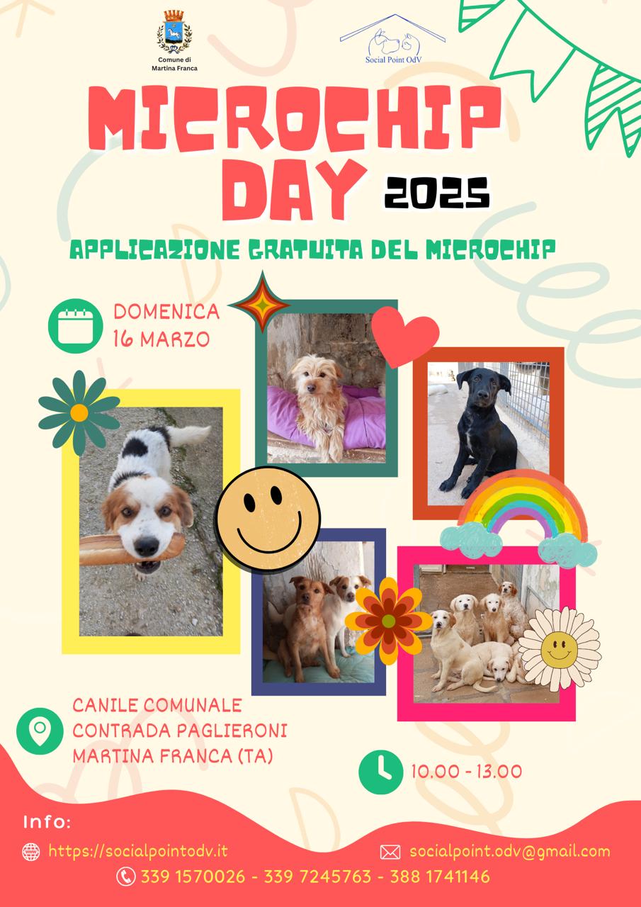 Domenica 16 marzo al canile comunale, in contrada Paglieroni, si svolgerà il “Microchip day”. Saranno applicati gratuitamente i microchip ai cani dei privati.