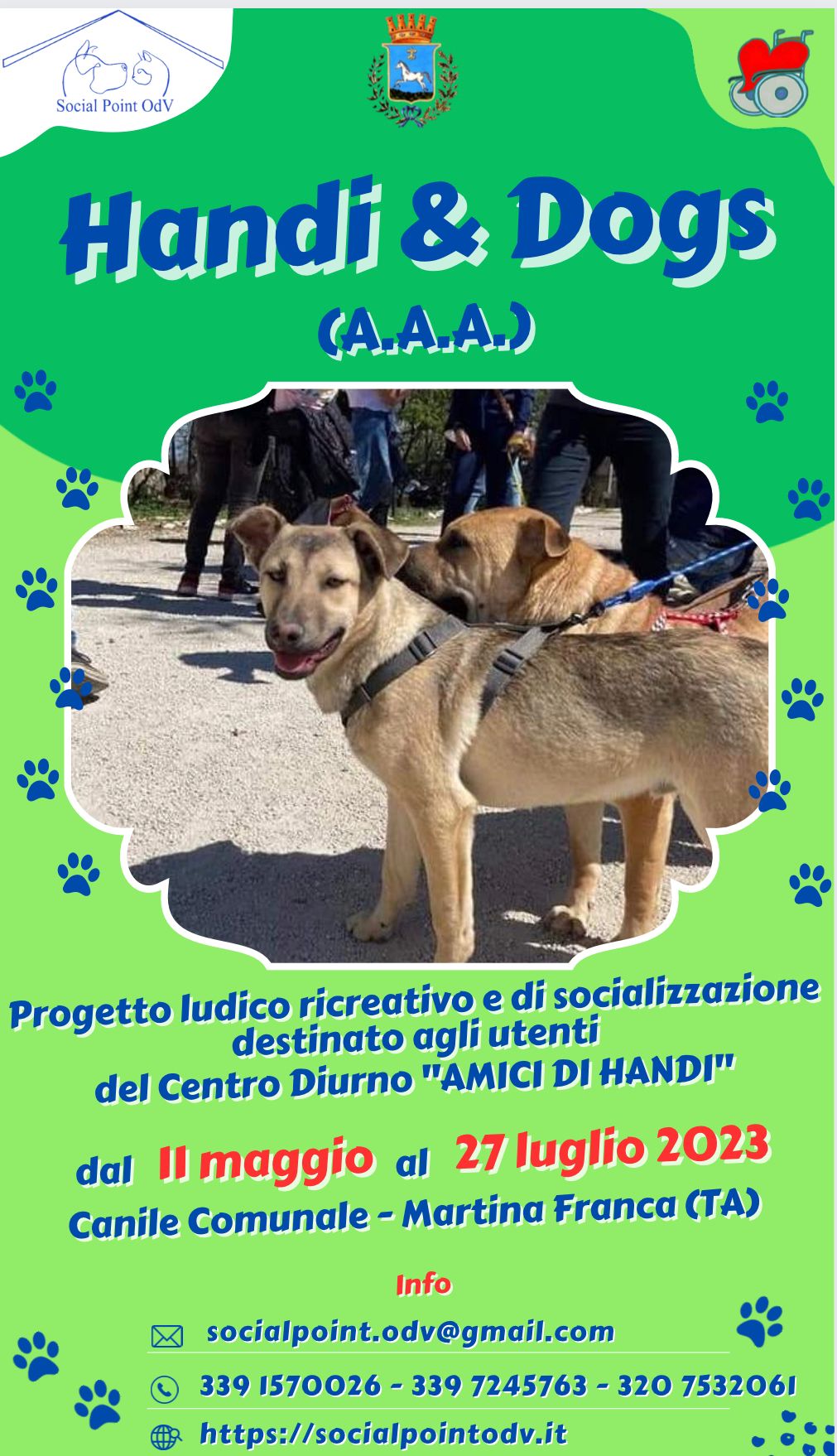 Domani 11 maggio parte il progetto “Handi & Dogs” frutto della sinergia fra il Centro Diurno Socio educativo riabilitativo Amici di Handi e l’associazione Social Point Odv che gestisce il canile comunale.