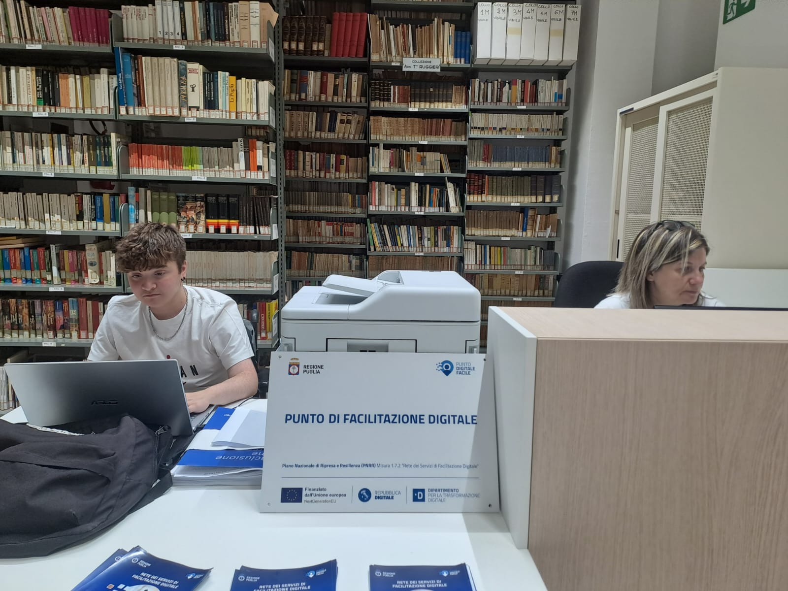 Il facilitatore digitale ha una postazione nella Biblioteca comunale “Isidoro Chirulli” in via Pietro Barnaba dove è stato realizzato il nuovo ingresso privo di barriere architettoniche.