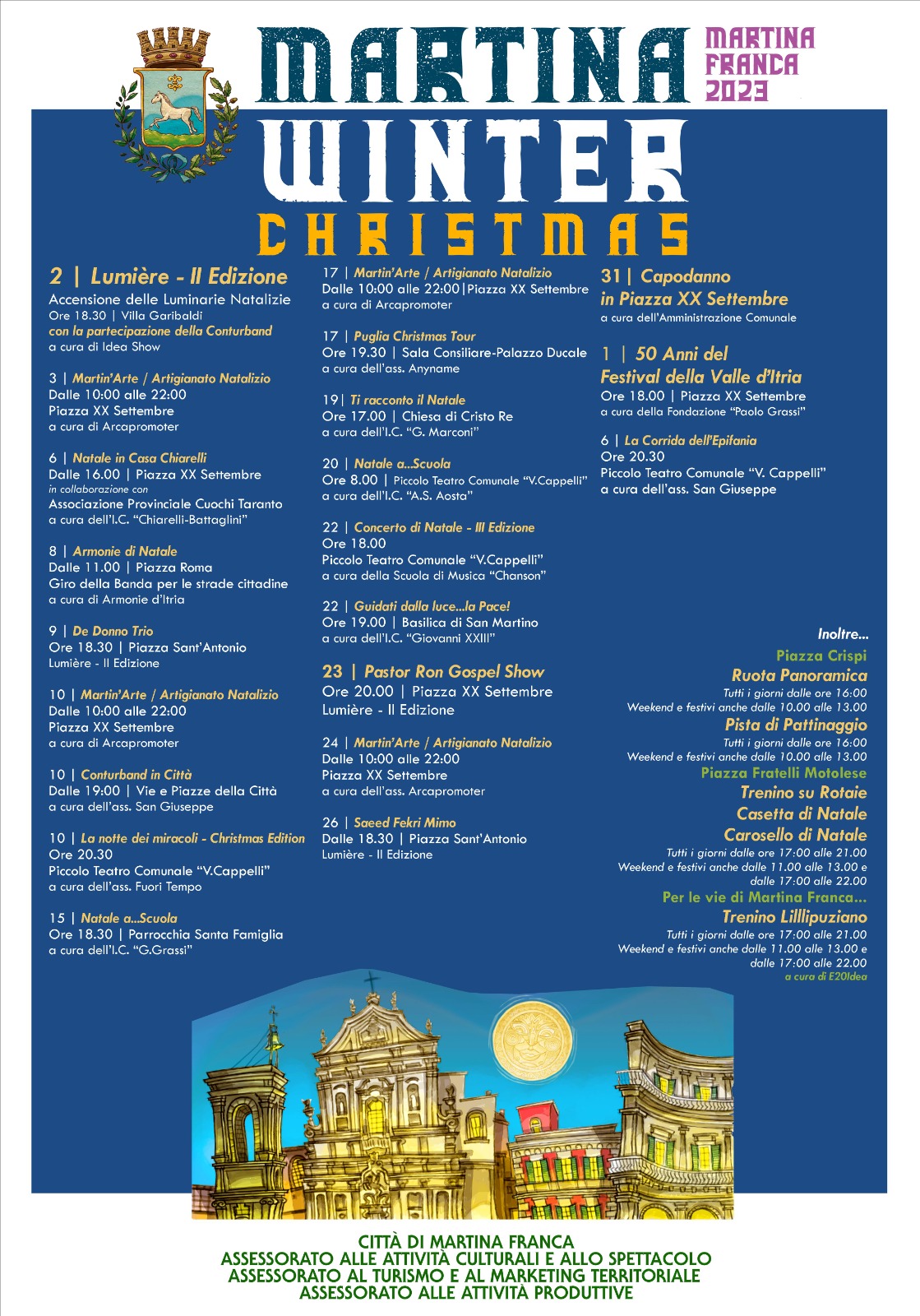 I singoli eventi della ricca e ampia rassegna potranno essere consultati sul sito del Comune www.comunemartinafranca.ta.it o attraverso i canali social istituzionali che forniranno gli aggiornamenti del programma.